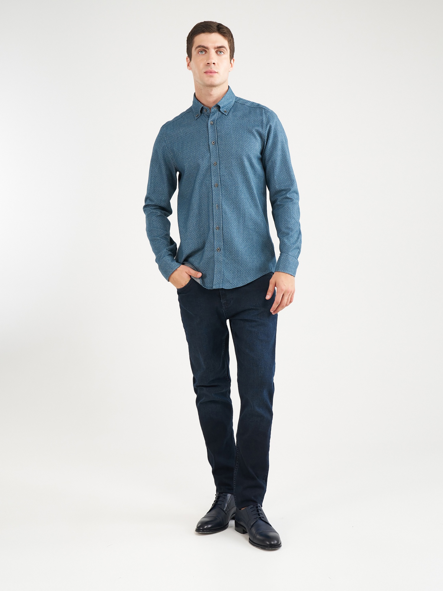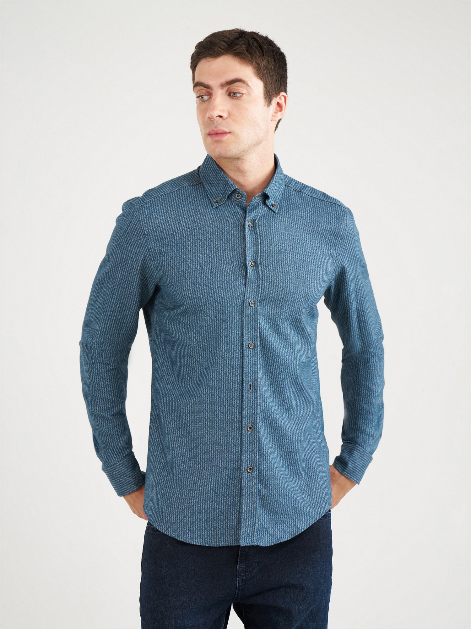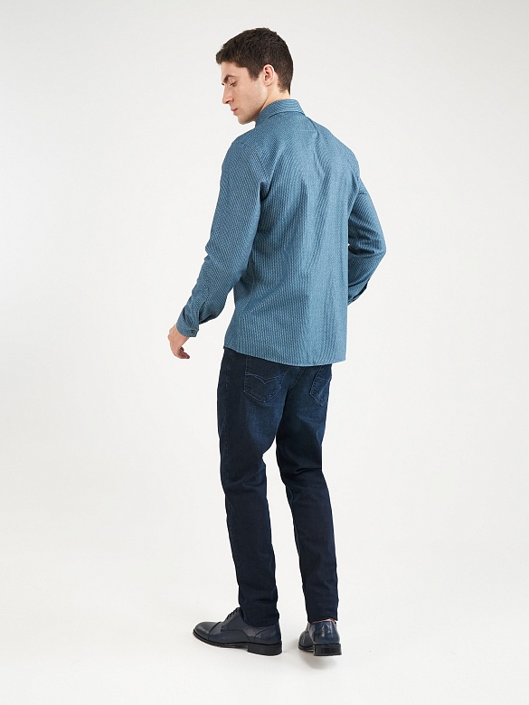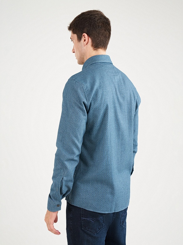 Приталенная рубашка Cacharel — из шерстяной ткани с мелким узором. Шерсть делает материал приятным и комфортным в носке. Мелкий узор придаёт модели аккуратный внешний вид. Приталенный крой формирует собранную посадку. Рубашка застёгивается на пуговицы.