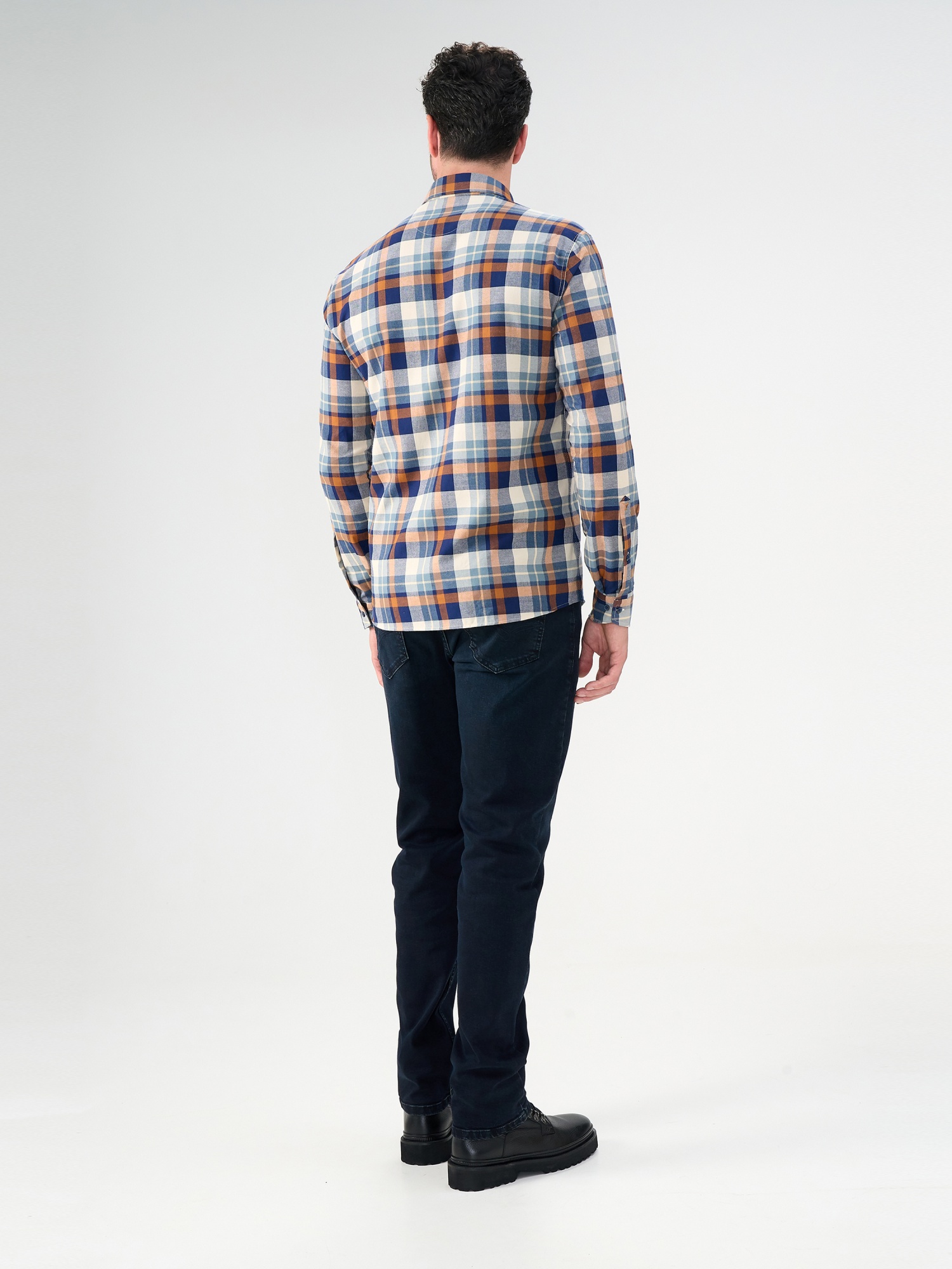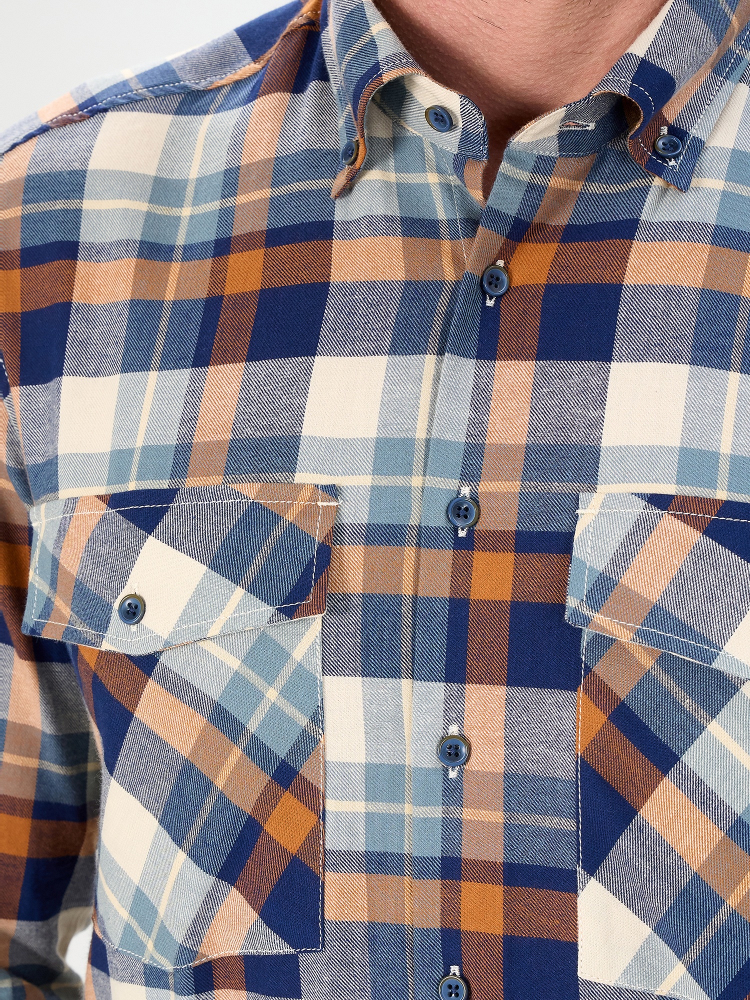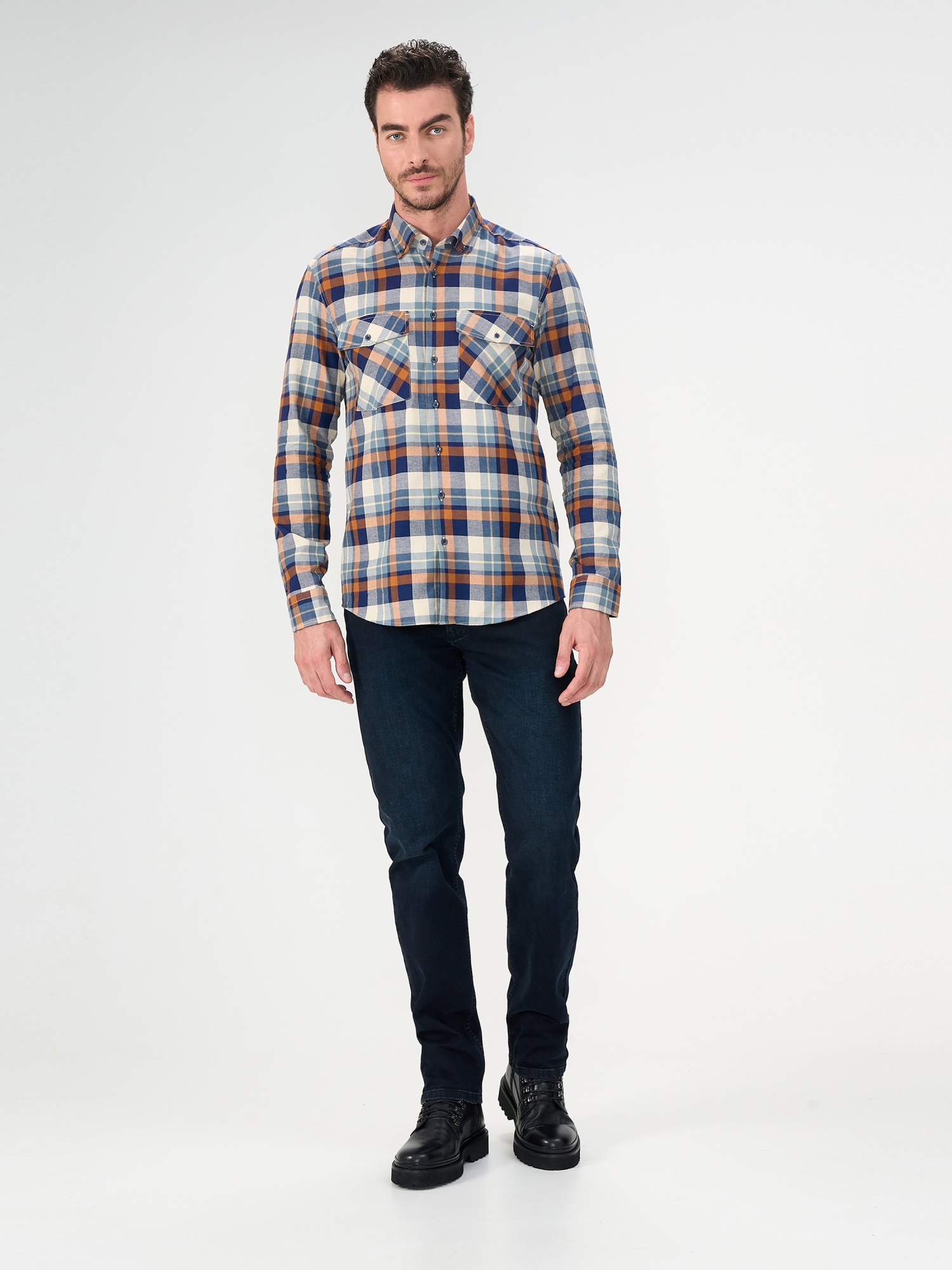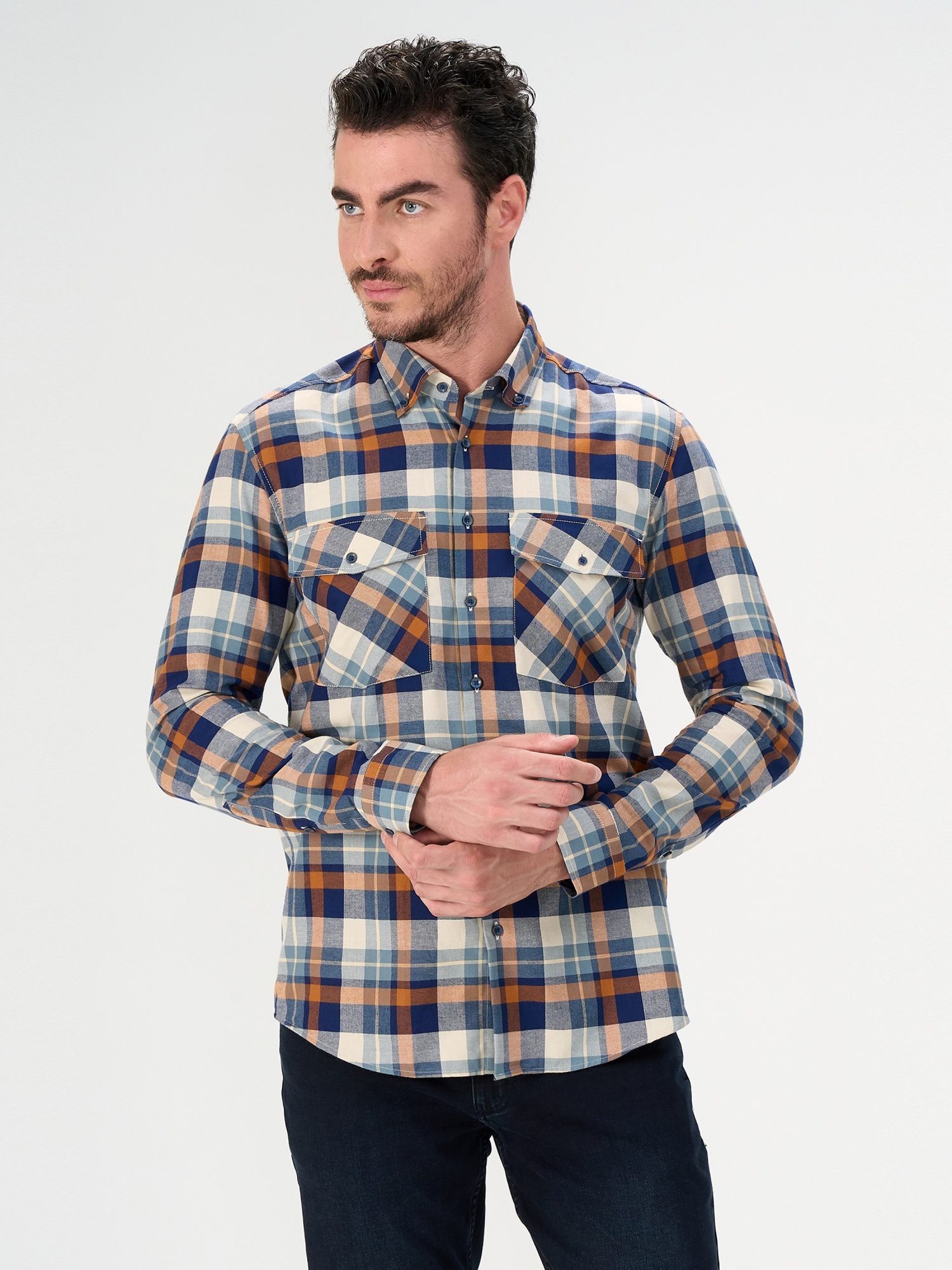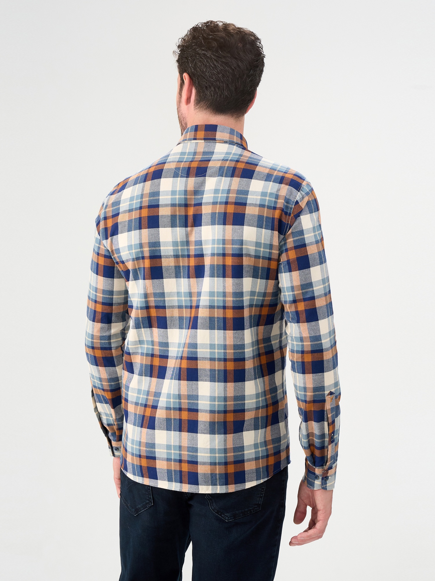 Рубашка Cacharel — в клетку прямого кроя. Прямой силуэт обеспечивает комфортную посадку и свободу движений. Клетчатый узор придаёт модели выразительный повседневный характер. Рубашка дополнена накладными карманами на груди, воротником на пуговицах, который помогает сохранять форму.
