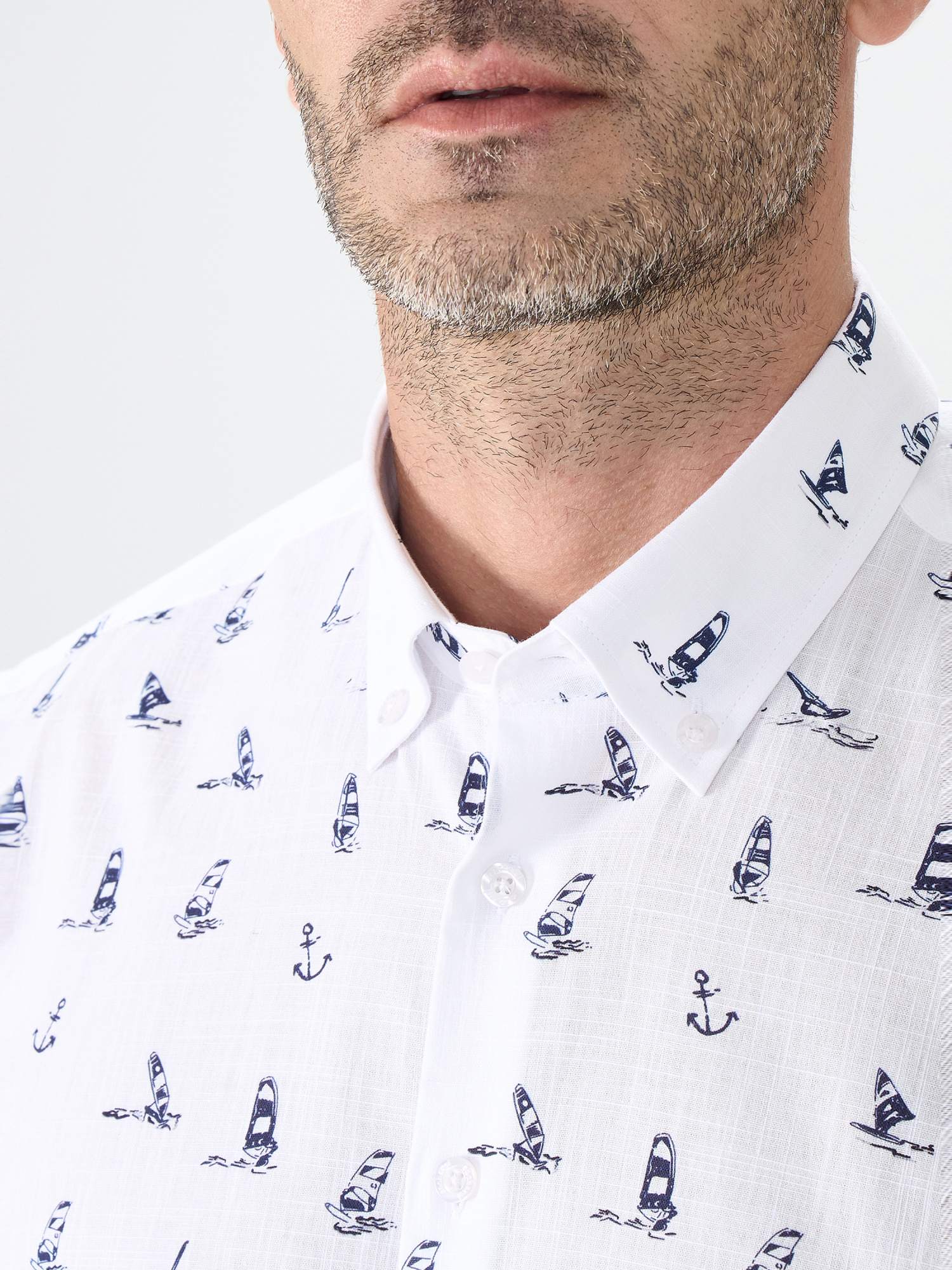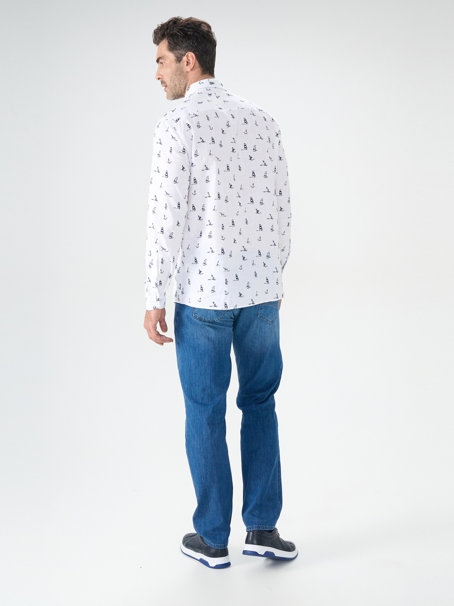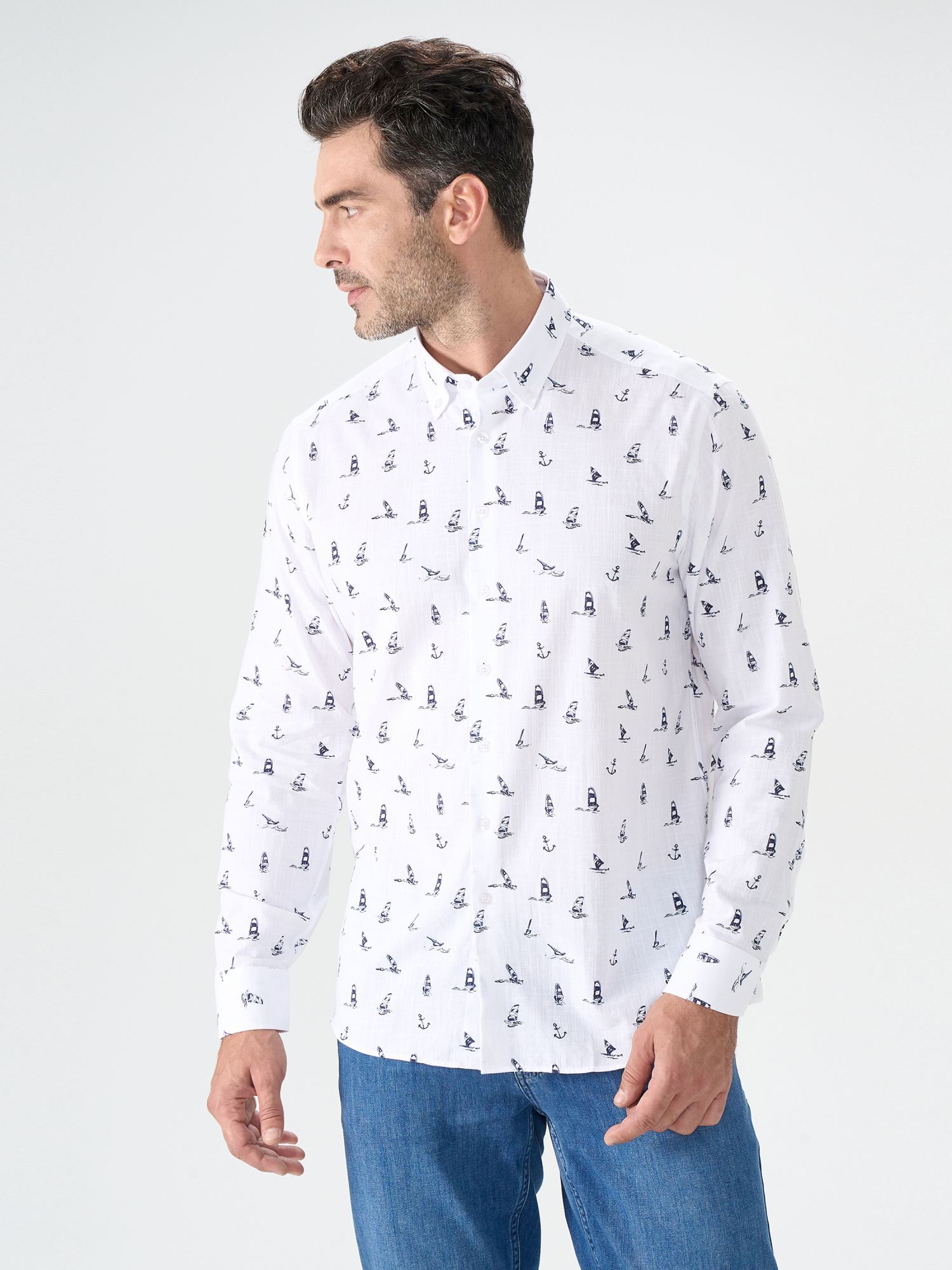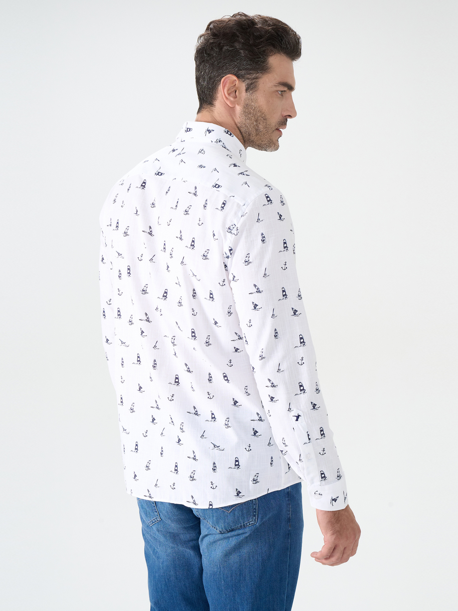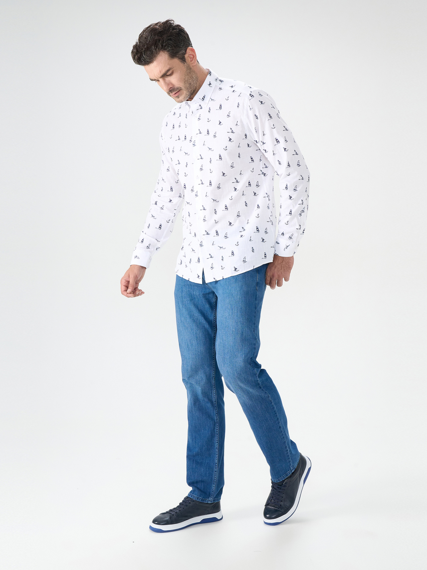 Мужская повседневная рубашка с морскими узорами от известного бренда Cacharel - это идеальный выбор для стильного и модного мужчины. Эта приталенная рубашка обладает уникальным дизайном, который привлекает взгляды и подчеркивает индивидуальность своего обладателя. Морские узоры на рубашке создают атмосферу легкости и свежести, напоминая о летнем отдыхе на берегу моря. Ткань высокого качества обеспечивает комфорт и удобство в носке, а приталенный крой подчеркивает фигуру и придает образу элегантности. Эта мужская рубашка бренда Cacharel станет отличным дополнением к вашему гардеробу, добавляя нотку стиля и изысканности. Сочетайте ее с джинсами для повседневного образа или с брюками для более формального выхода. Независимо от того, как вы ее носите, эта рубашка будет привлекать восхищенные взгляды окружающих. Не упустите возможность приобрести эту уникальную мужскую рубашку с морскими узорами от бренда Cacharel и добавьте своему стилю неповторимый шарм и изысканность.