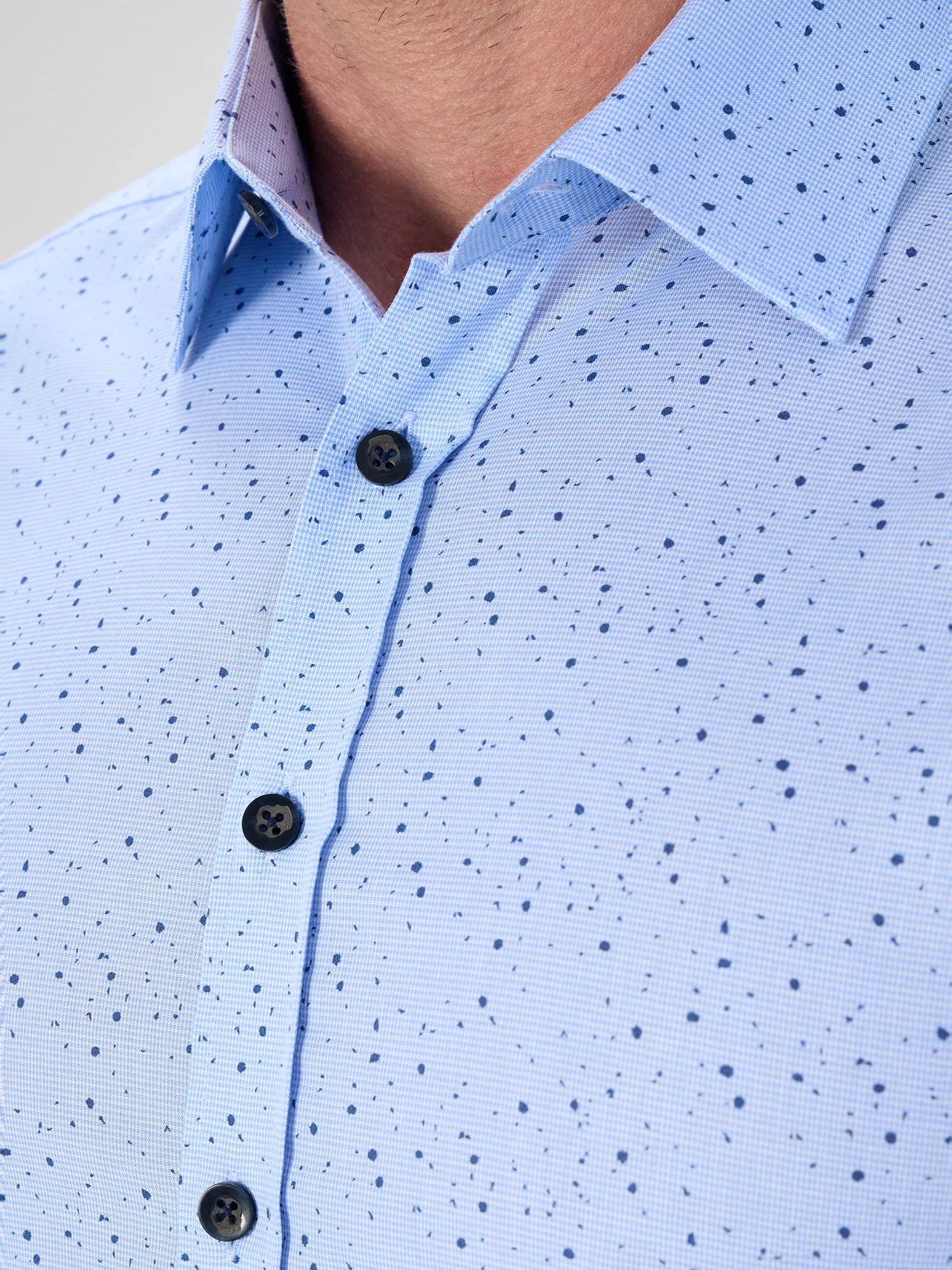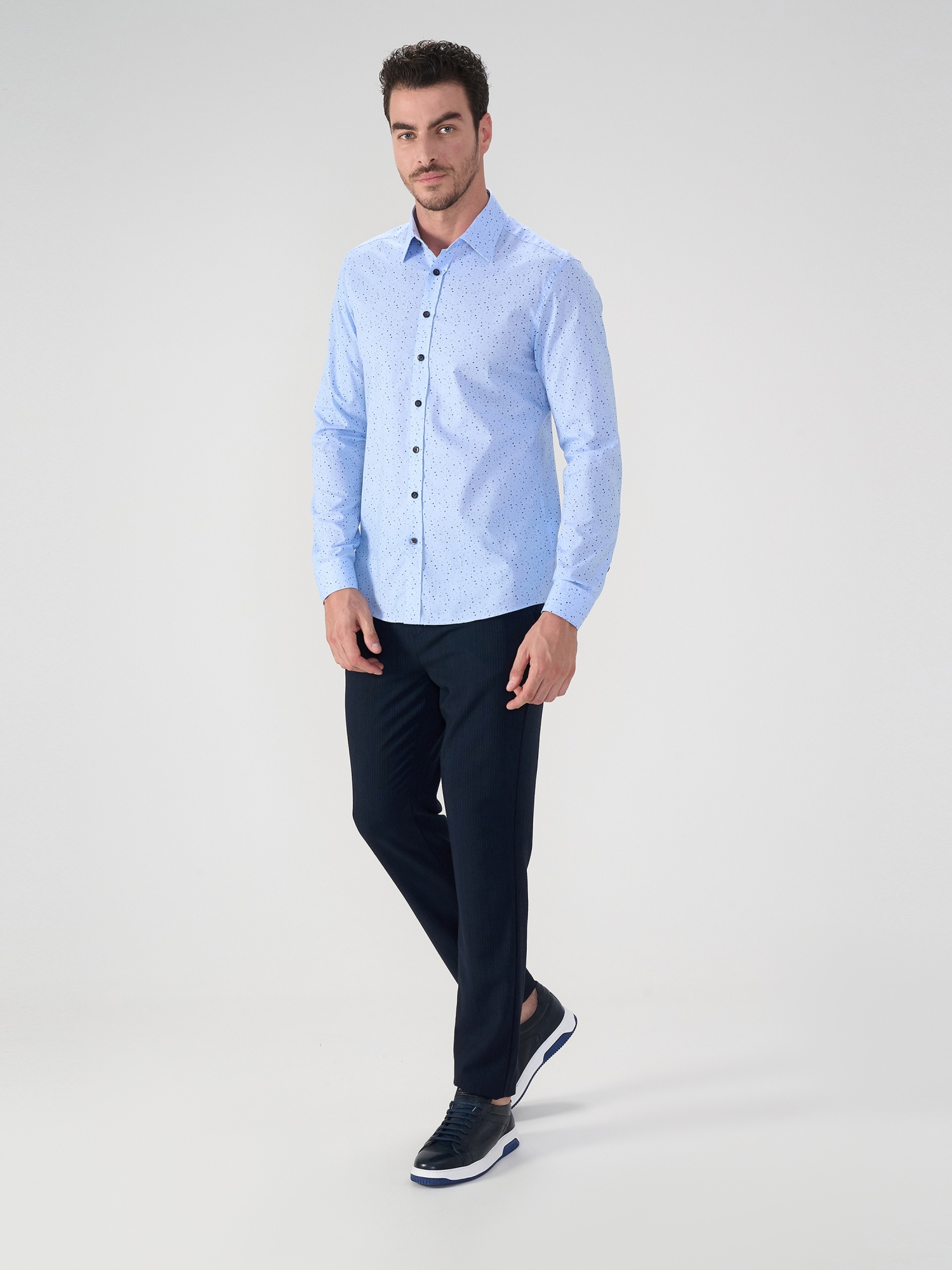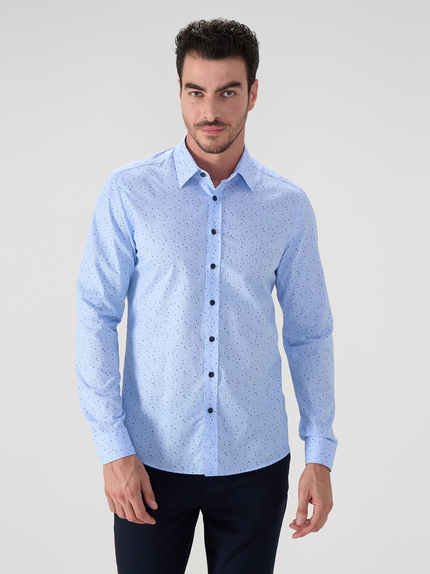 Рубашка Cacharel — с узором, приталенного кроя. Узор создан, для создания стильного и запоминающегося образа, сочетающего в себе классический крой и выразительный узор. Она обеспечит вам комфорт и элегантный внешний вид в течение всего дня. Рубашка с воротником на пуговицах, который фиксирует форму и сохраняет опрятный вид.