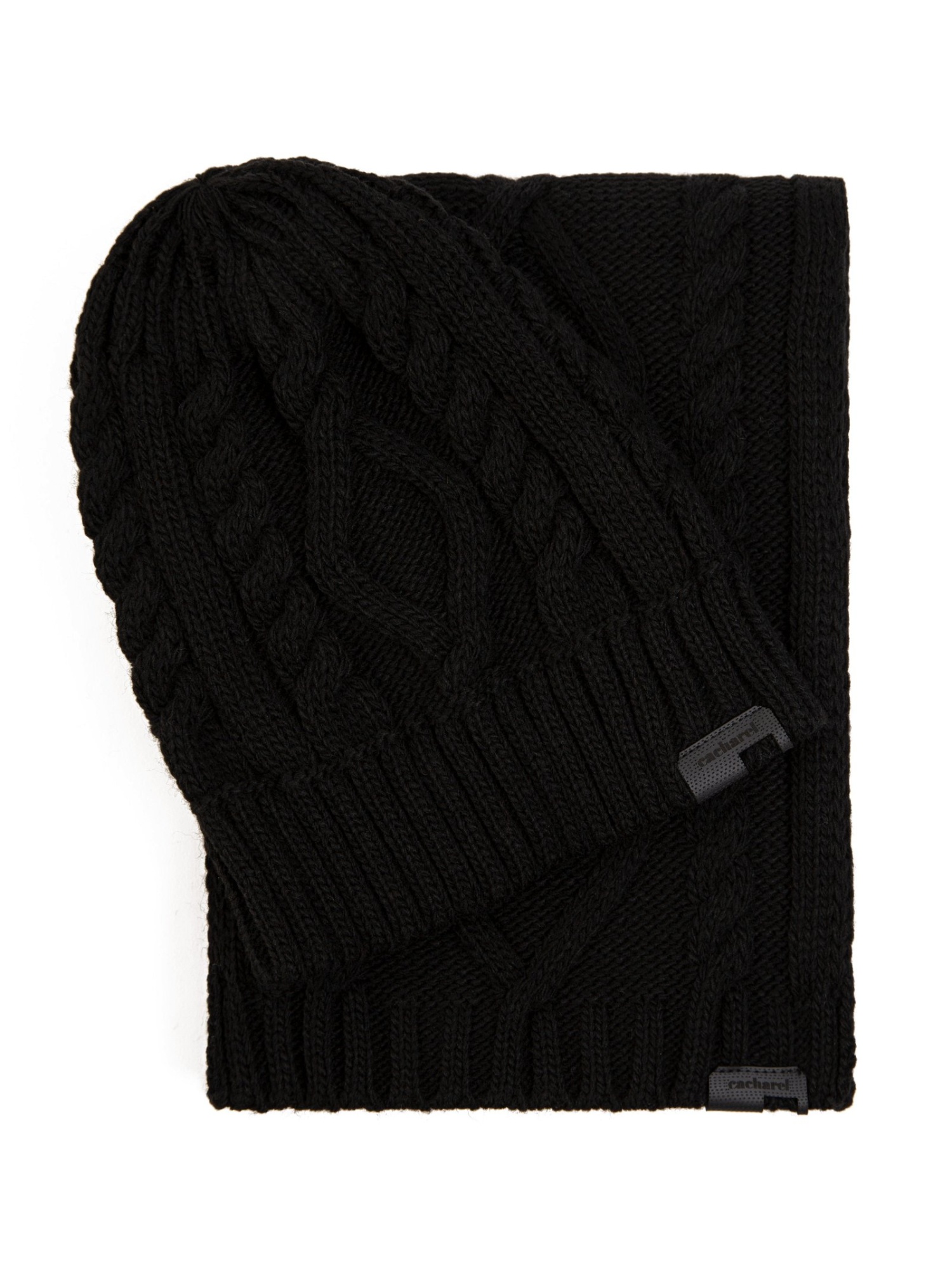 Комплект из шапки и шарфа Cacharel — выполнен в едином стиле, рельефная вязка формирует выразительный внешний вид изделий.