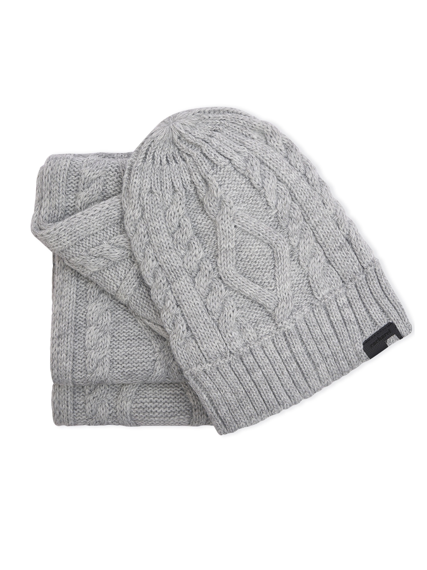 Комплект из шапки и шарфа Cacharel — выполнен в едином стиле, рельефная вязка формирует выразительный внешний вид изделий.