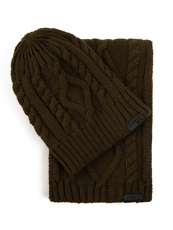 Комплект из шапки и шарфа Cacharel — выполнен в едином стиле, рельефная вязка формирует выразительный внешний вид изделий.