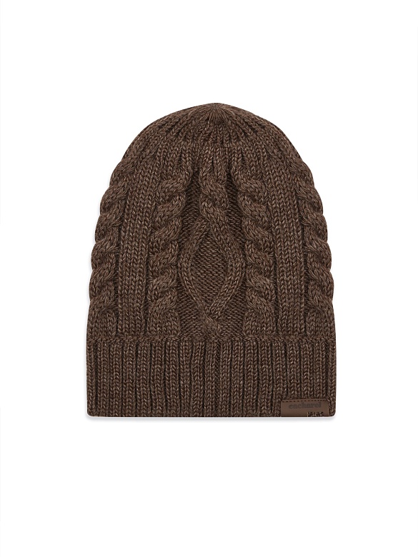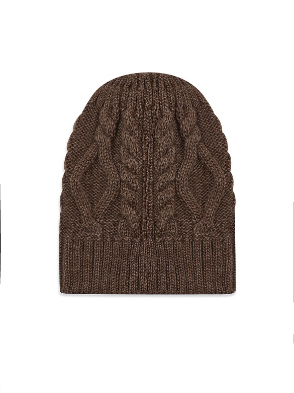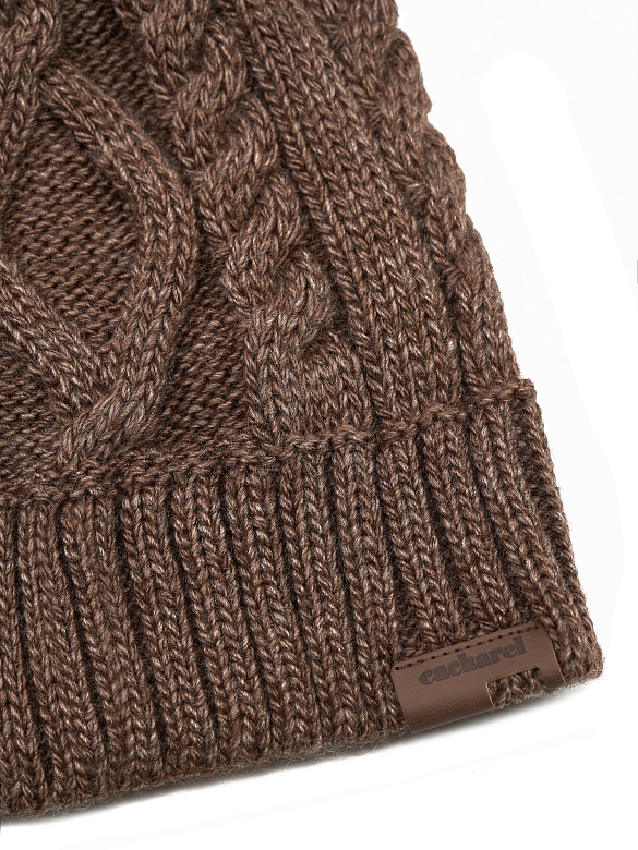 Шапка вязаная без отворота Cacharel — с рельефным вязаным узором «косы», который формирует выразительный внешний вид изделия. Модель без отворота подчёркивает чистую линию силуэта и аккуратную посадку.