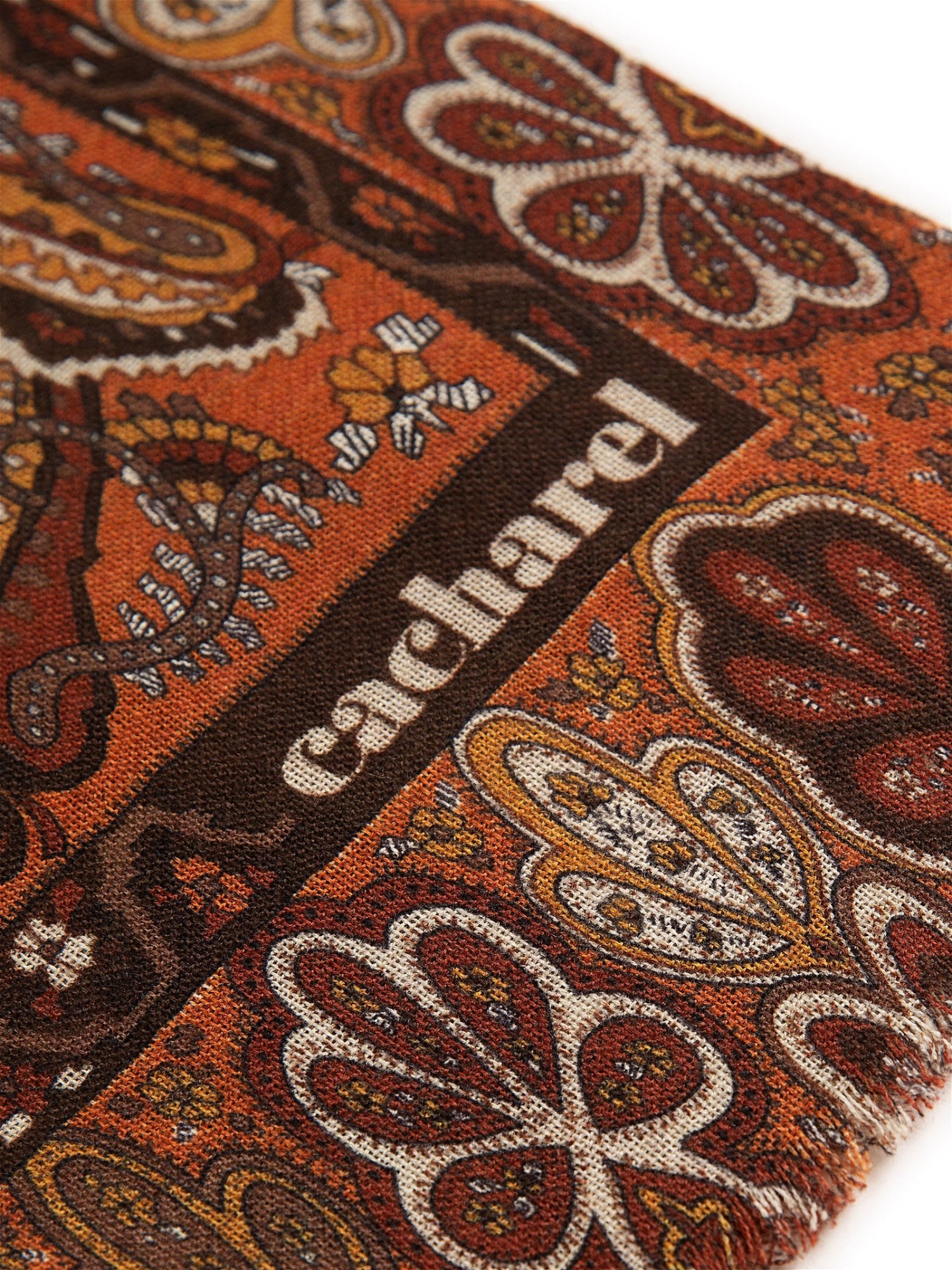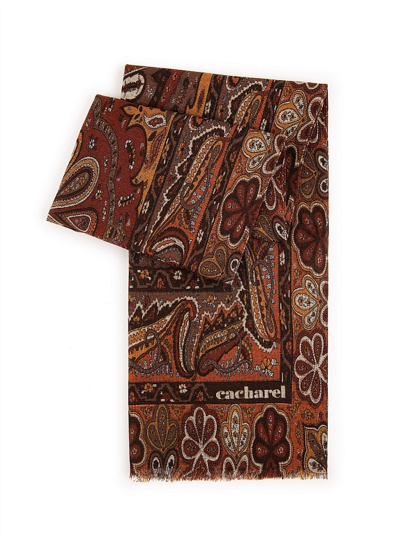 Шарф из шерсти с узором пейсли Cacharel — изготовлен из шерсти. Оформлен декоративным узором пейсли с характерными завитками и орнаментальными элементами.