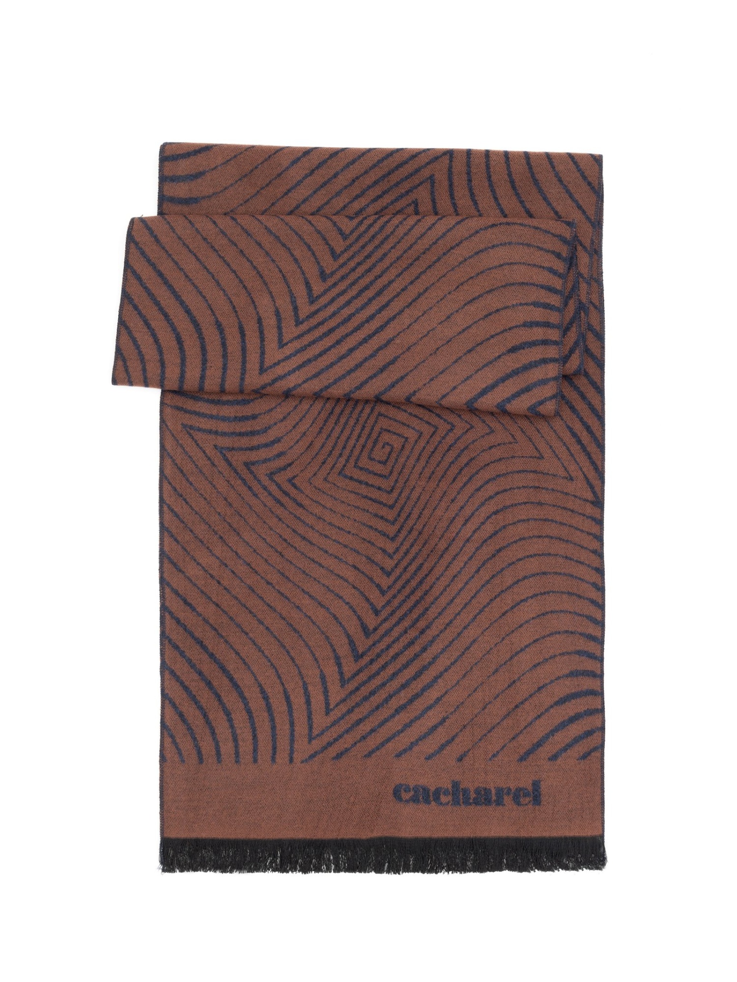 Шарф из вискозы с узором Cacharel — узор с плавными линиями и геометрическими мотивами формирует выразительный визуальный ритм.