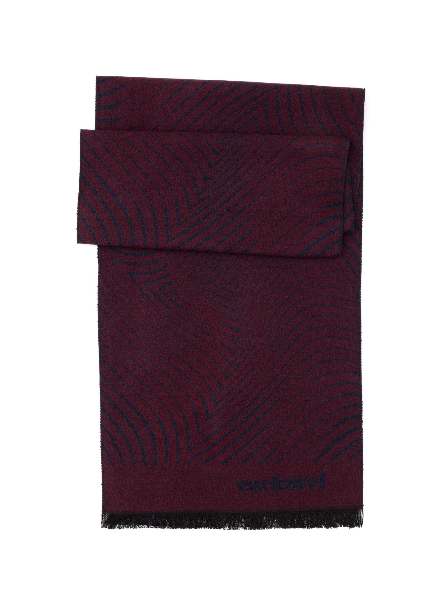 Шарф из вискозы с узором Cacharel — узор с плавными линиями и геометрическими мотивами формирует выразительный визуальный ритм.