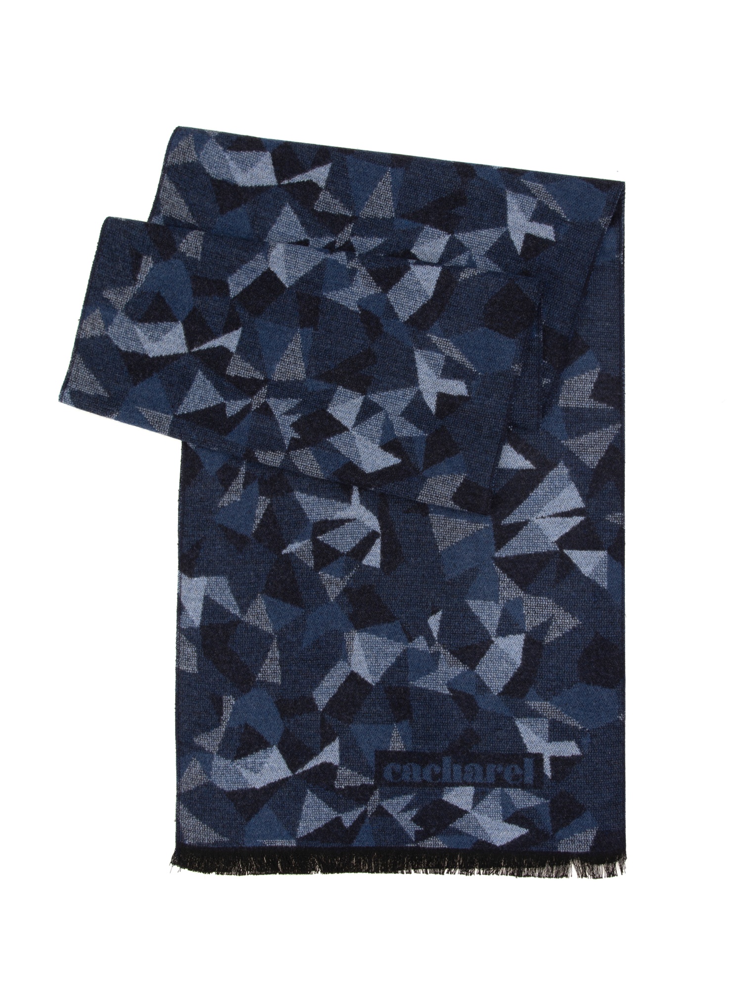 Шарф из вискозы с узором Cacharel — украшен абстрактным орнаментом, составленным из геометрических форм. Узор формирует выразительный внешний вид изделия.