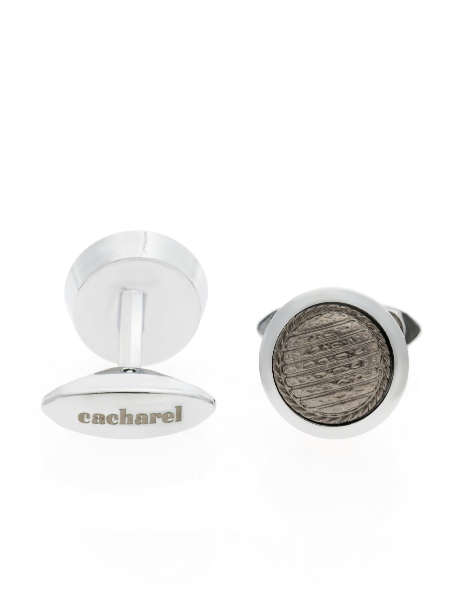 Запонки Cacharel круглые — элегантный аксессуар для классических и деловых образов. Изделие выполнено из металла и дополнено фактурной вставкой с тонким рельефным рисунком, которая придаёт дизайну выразительность.