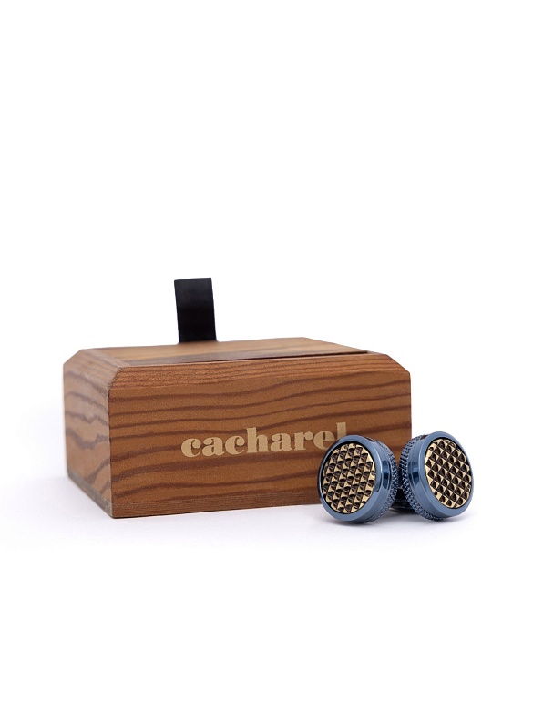 Запонки Cacharel круглые — эффектный аксессуар для классических и деловых образов. Изделие выполнено из металла и дополнено декоративной вставкой с объёмным рельефом в виде пирамидок, которая придаёт дизайну выразительность. По боковой части проходит рельефный ободок, подчёркивающий форму запонок.
