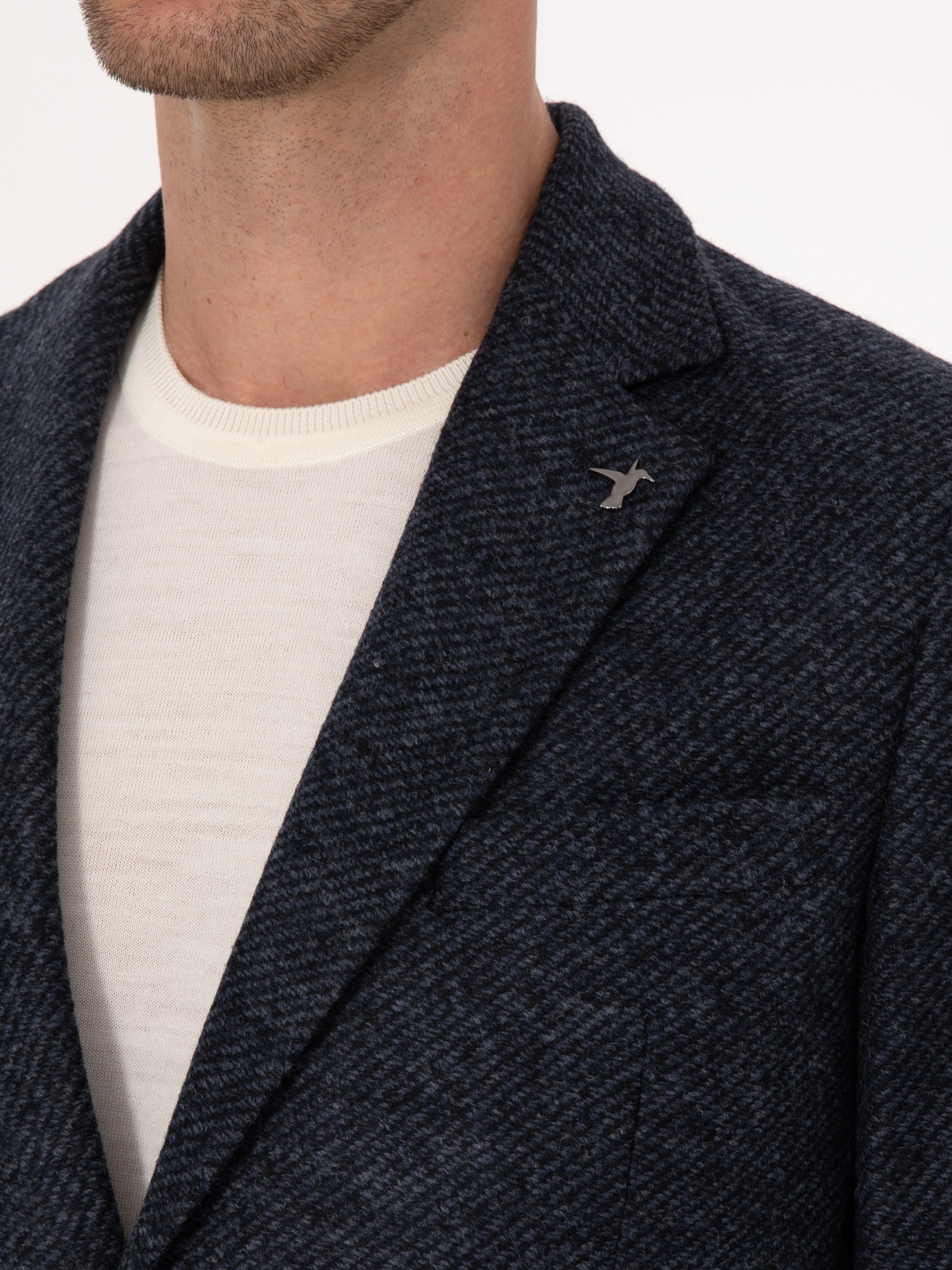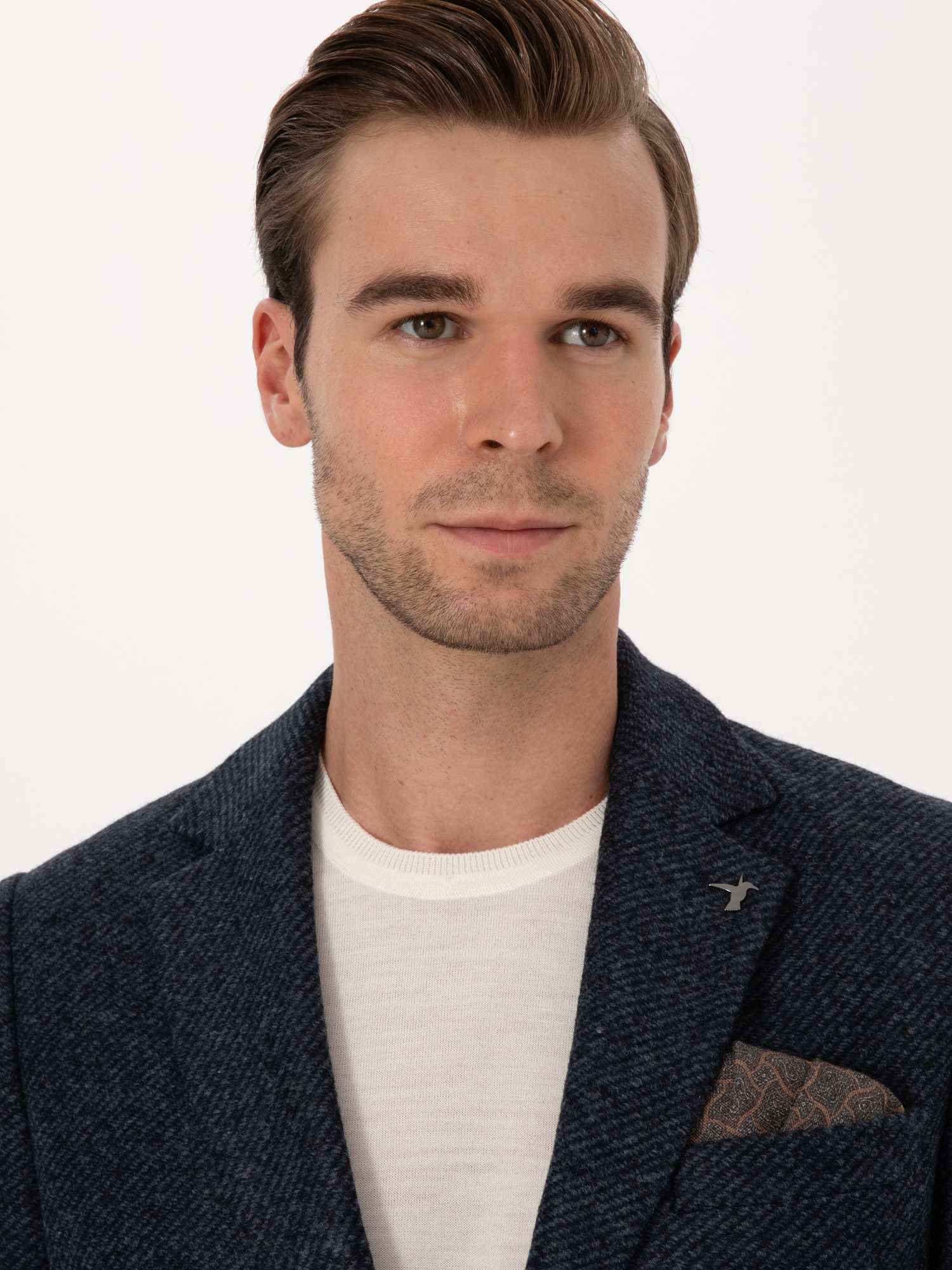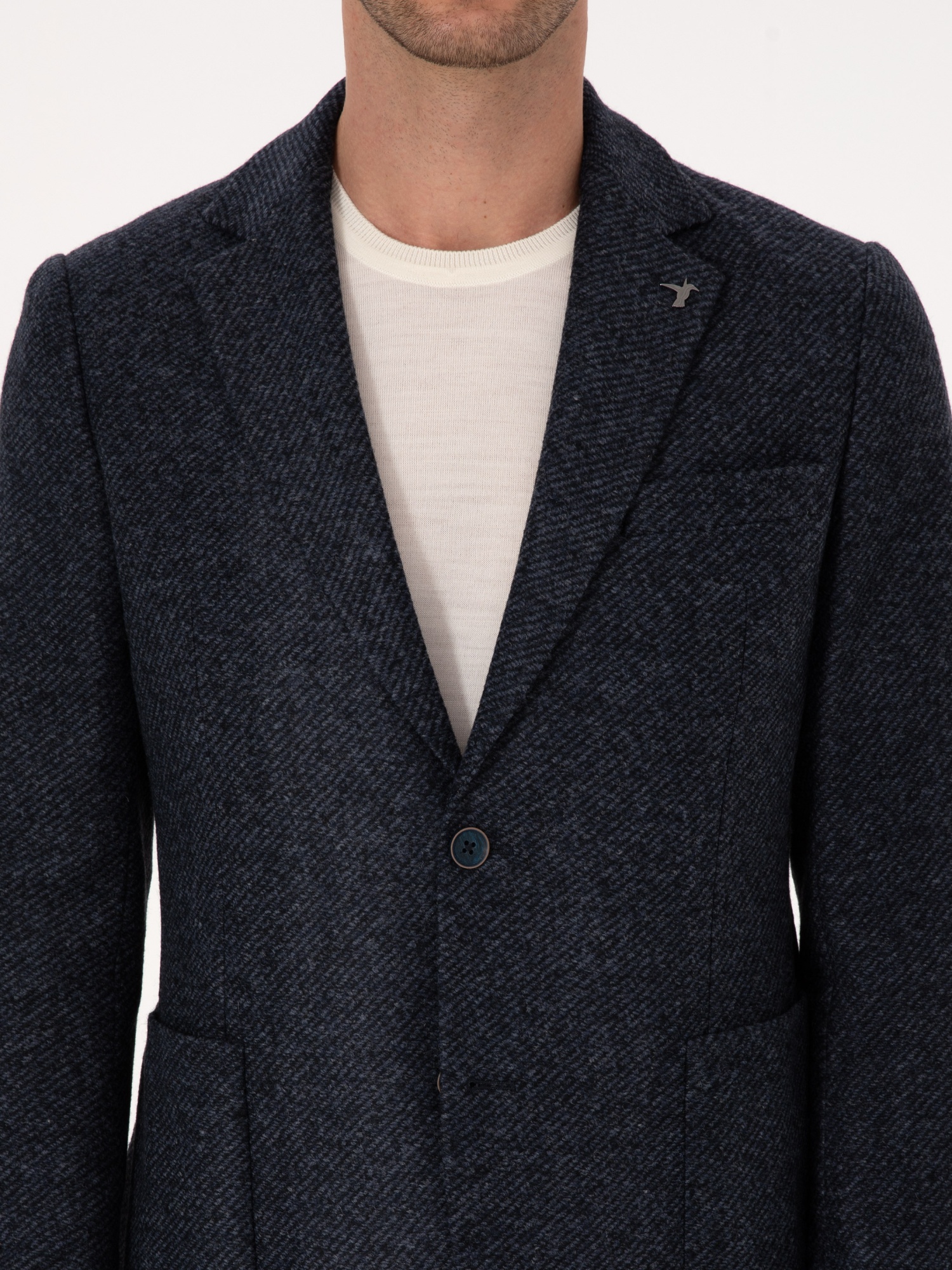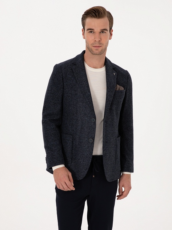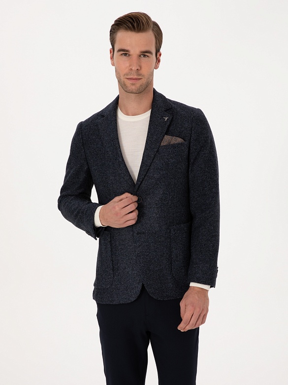 Пиджак Cacharel из мягкой смесовой шерсти в фактурном плетении. Внутренняя часть аккуратно отделана подкладкой, а внешний вид дополнен классическими элементами: накладными карманами с нагрудным карманом и аккуратными пуговицами на манжетах.