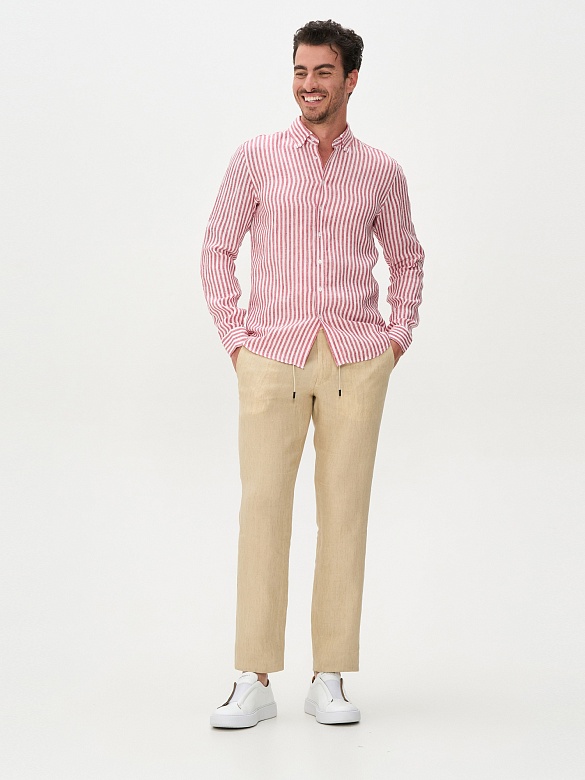 Рубашка в полоску из льна приталенная